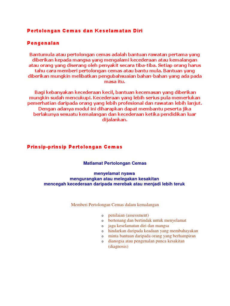 Pertolongan Cemas Dan Keselamatan Diri Pdf
